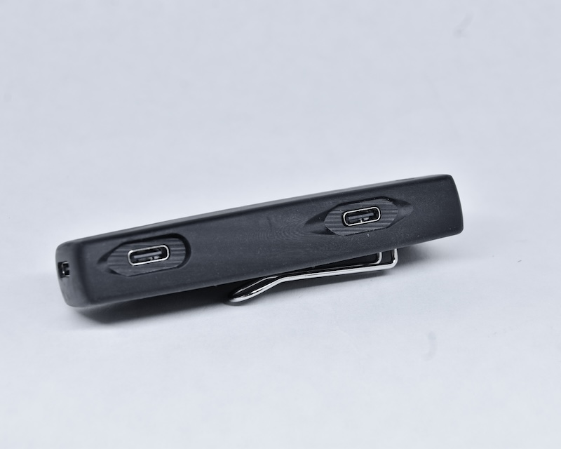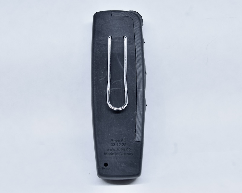 The battery is charged by plugging in a standard USB C charger to the charging connector at the bottom end of the Bluelink.