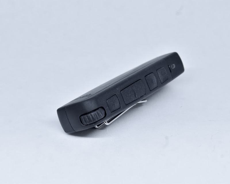 The play & pause button is the top-most key on the BlueLink – right under the volume wheel